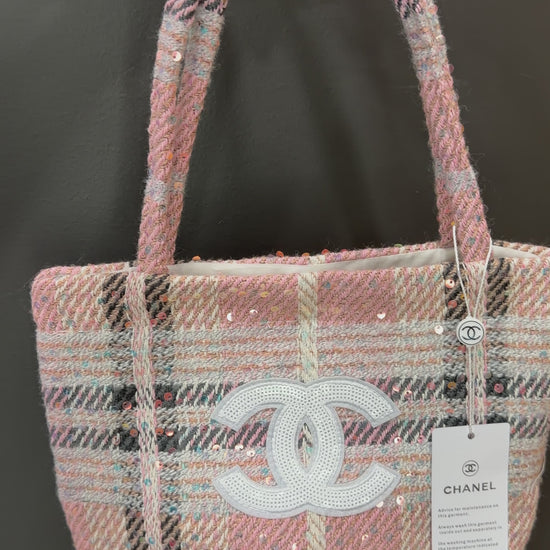 Add timeless charm to your collection with this fashion plaid textured tote, featuring soft blush and neutral tones woven into a stunning multi-textured fabric. Its subtle shimmer accents bring just the right touch of elegance — perfect for both everyday wear and chic casual outings.