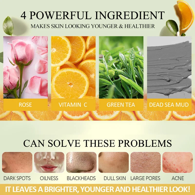 - 4-in-1 facial clay mask set: Turmeric Vitamin C, Green Tea, Dead Sea Mud & Rose Clay
