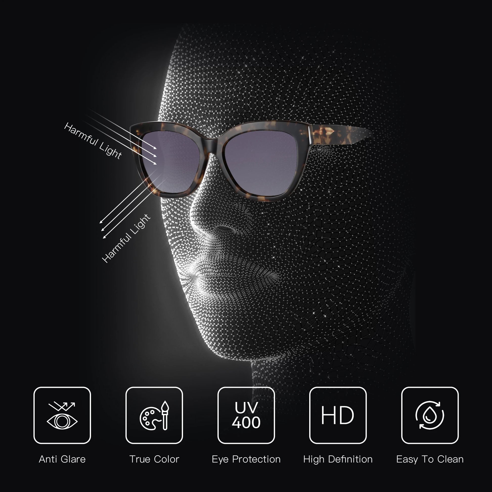 Elegant butterfly-style polarized sunglasses designed for women, featuring a handmade acetate frame for durability and comfort. The TAC lenses provide UV400 protection and reduce glare, ensuring clear vision and eye safety. Perfect for driving, vacations, and everyday outdoor wear with a touch of sophistication.