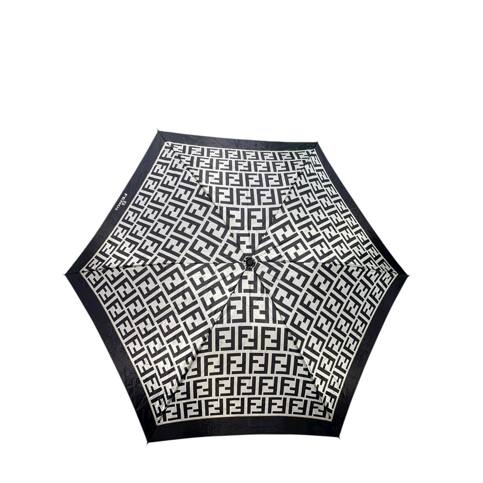 Elevate your rainy days with this chic Fendi Ivory Zucca umbrella! A true statement piece, this umbrella combines functionality with high fashion. Don't miss the chance to own a piece of Fendi history.