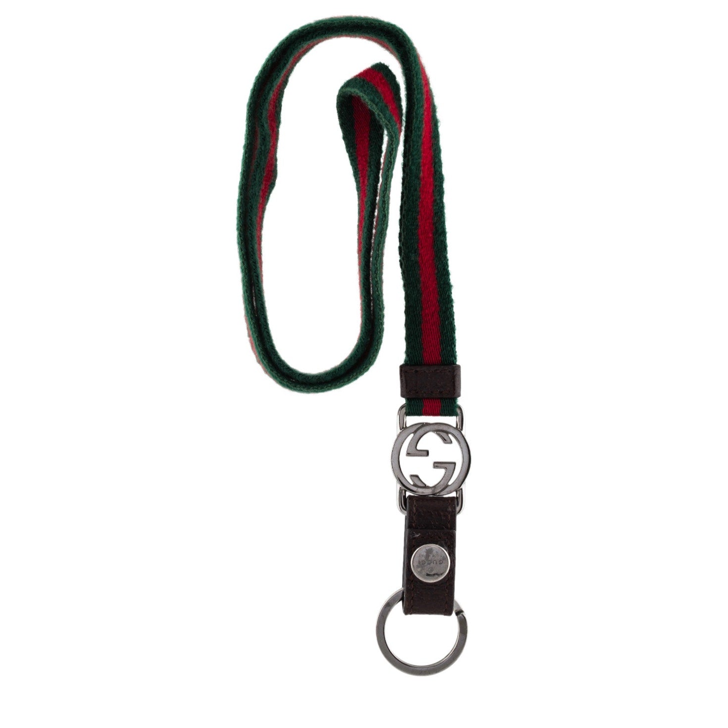 Functionality: Designed to carry keys, an ID card, or even act as a phone holder. This Gucci Web stripe lanyard/key chain is as practical as it is fashionable.