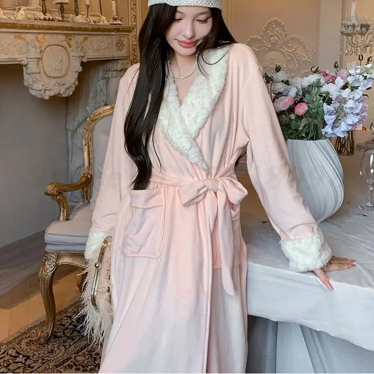Stay warm and stylish with this mid-calf flannel robe featuring a luxurious leopard print. Full sleeves and a soft, thick fleece fabric provide comfort for autumn and winter, making it perfect for home lounging, sleepwear, or intimate wear. Elegant and sexy, this kimono-style gown combines cozy warmth with playful sophistication.