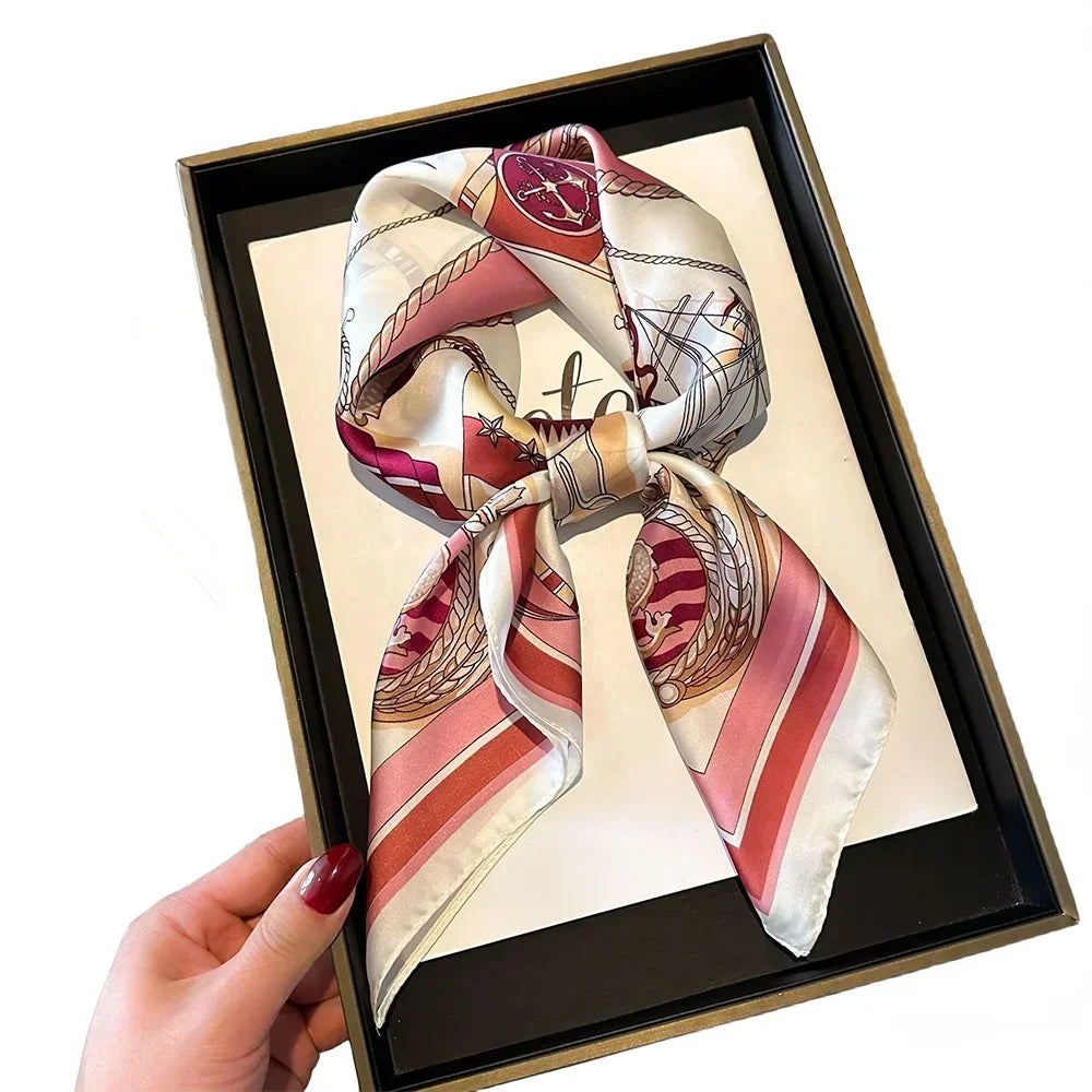 Elevate your look with this Luxury Print Silk Square Scarf, featuring a soft satin texture and elegant printed design. Versatile and stylish, it can be worn as a neckerchief, headband, hijab, or bag accessory—perfect for adding a touch of sophistication to any outfit.