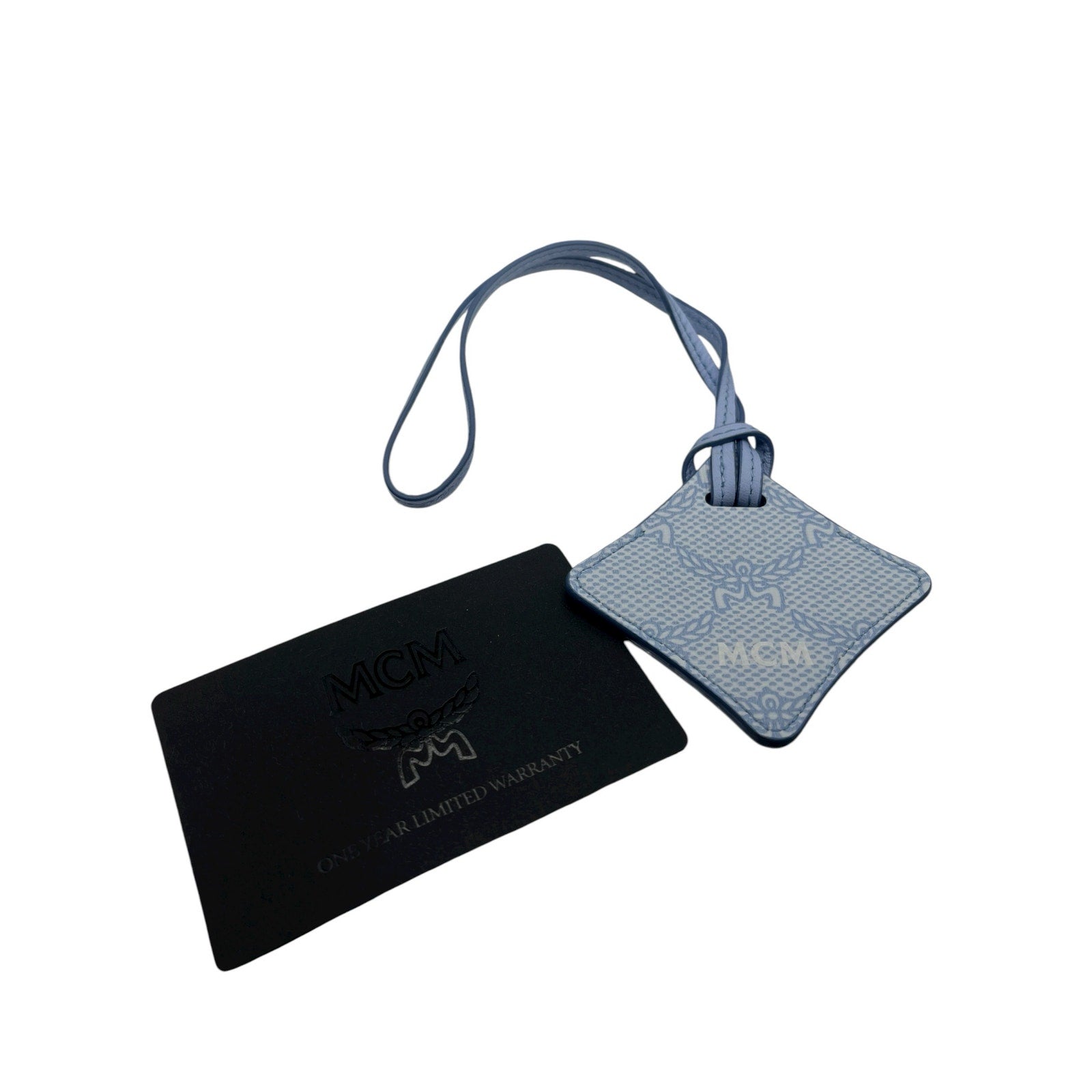 Elevate your travel essentials with this luxurious MCM Ottomar Air Tag Luggage Charm in Lauretos (Ancient Blue). It's the perfect accessory to keep track of your luggage or other belongings in style.