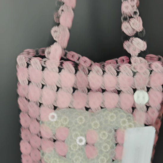 Pink Houndstooth Textured Tote Bag (GWP Product) pop