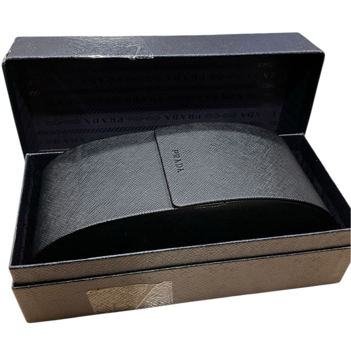 Step into a world of elegance with these NEW Prada PR A14S sunglasses, a true testament to timeless style. The sophisticated solid dark grey lenses beautifully complement the modern black-colored butterfly frame, creating a captivating aesthetic.