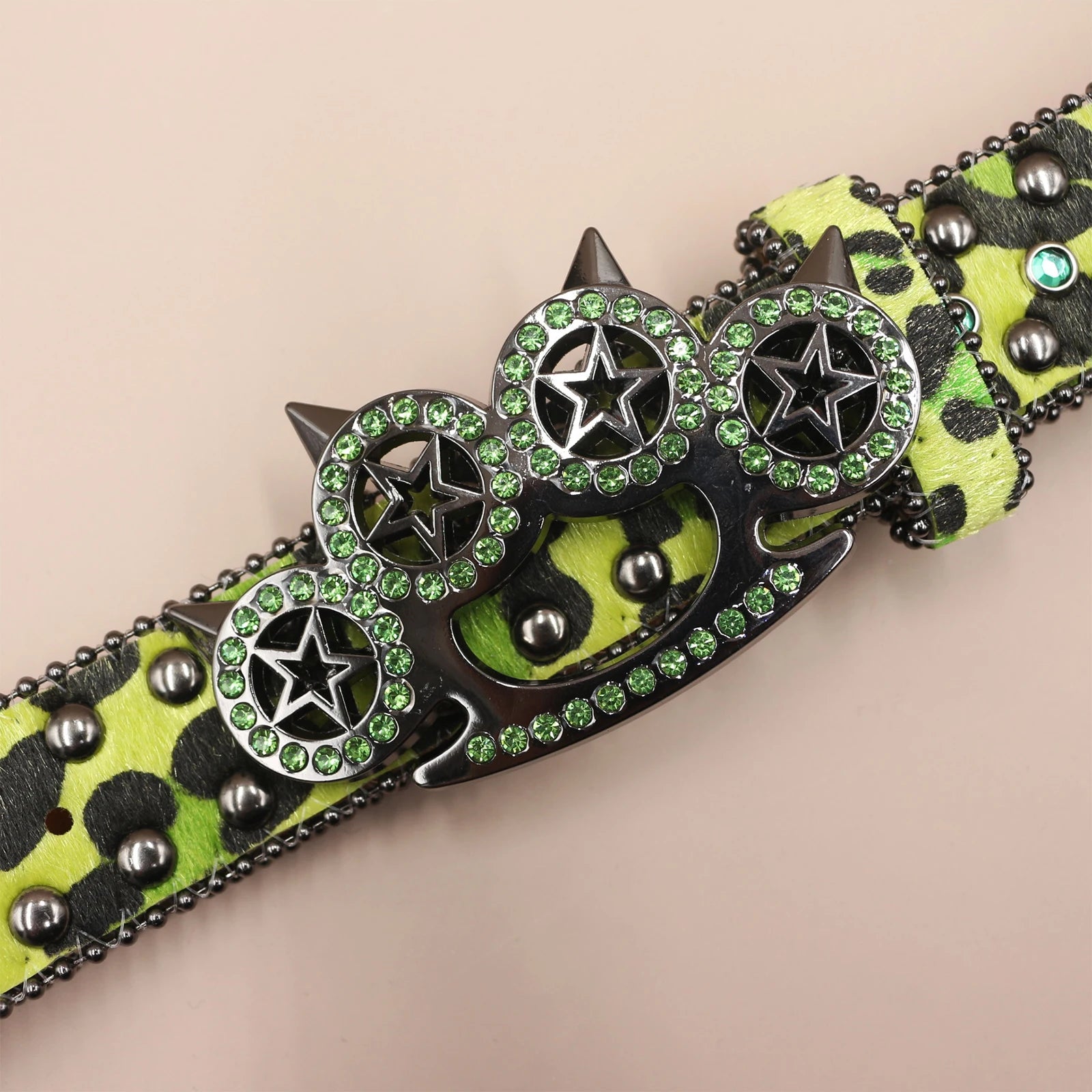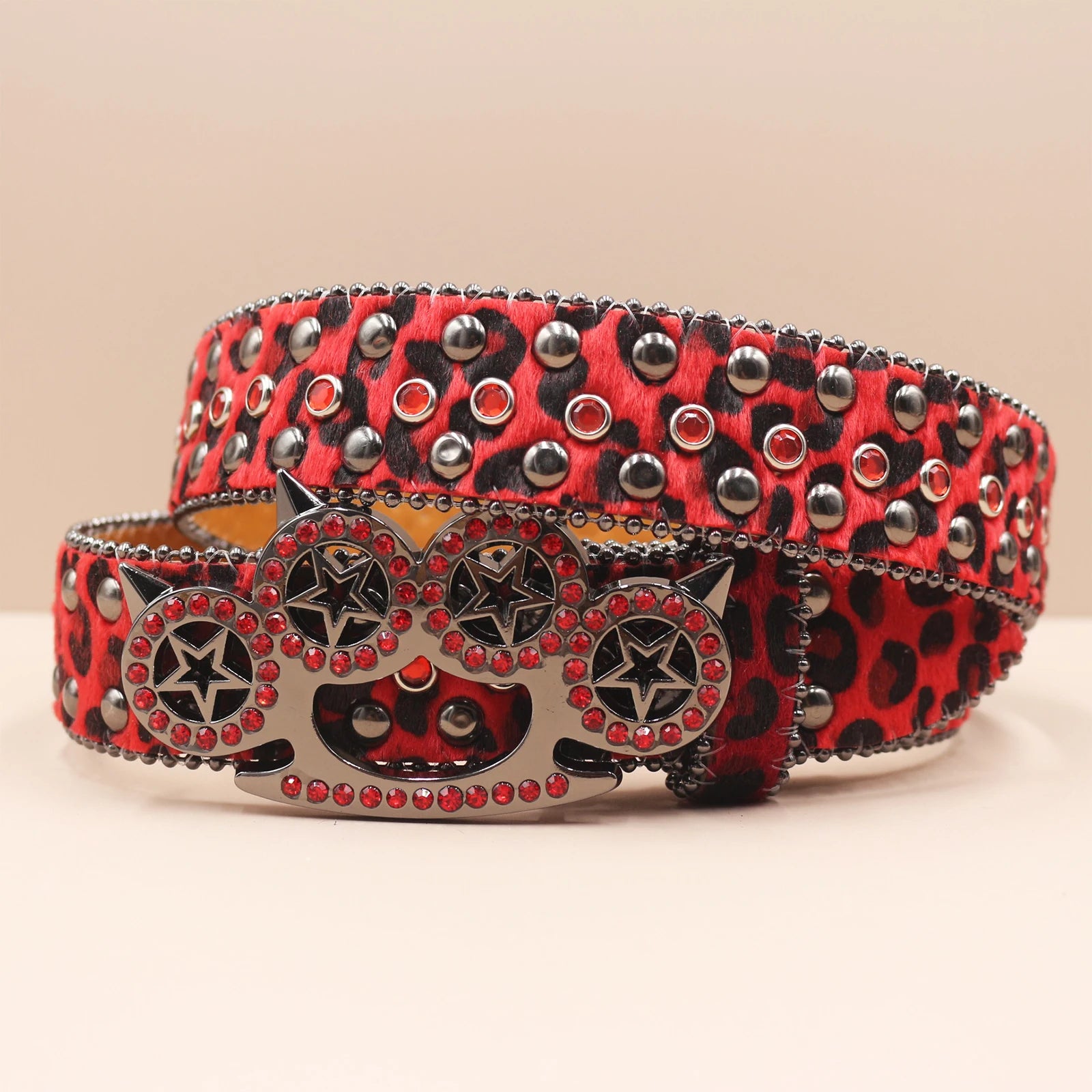 Make a bold statement with this stylish unisex belt featuring a leopard print and sparkling rhinestones. Designed with a western denim-inspired shiny rivet design, this belt combines Y2K and hip-hop aesthetics for a standout look. Perfect for adding flair to jeans, casual outfits, or streetwear ensembles.