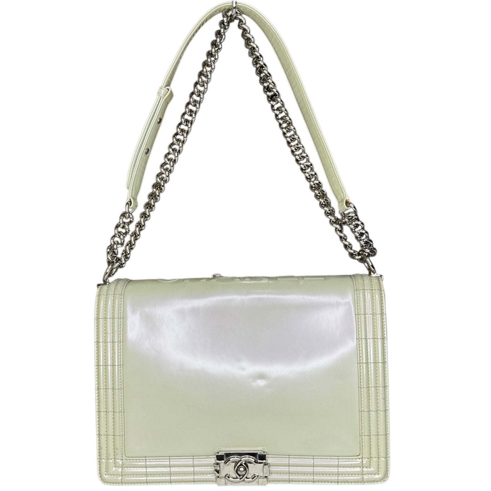 Chanel Pearl Iridescent Glazed Patent Leather Large Reverso Boy Flap Bag
