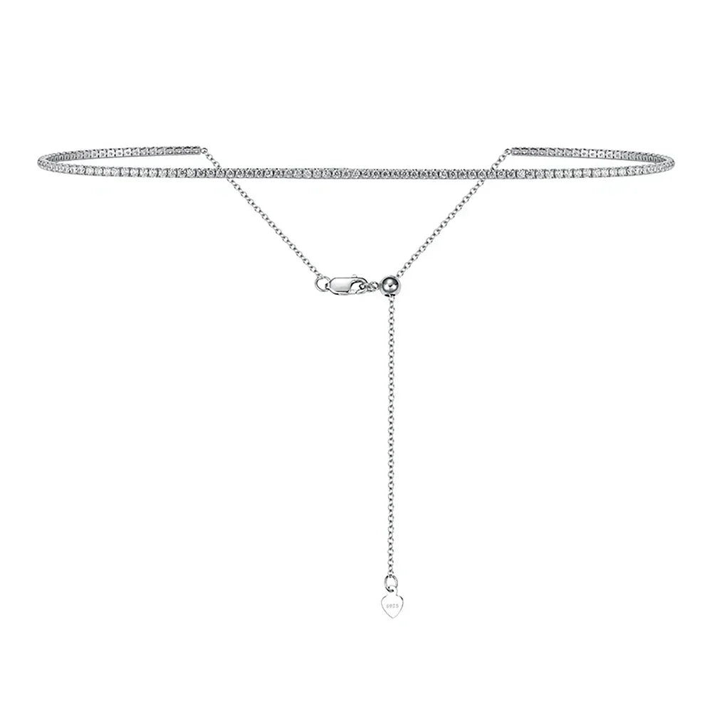 Add sparkle to any outfit with this elegant 2mm moissanite tennis necklace. Featuring a classic round-cut design and adjustable choker style, it delivers a timeless and refined look perfect for parties, weddings, and everyday wear.